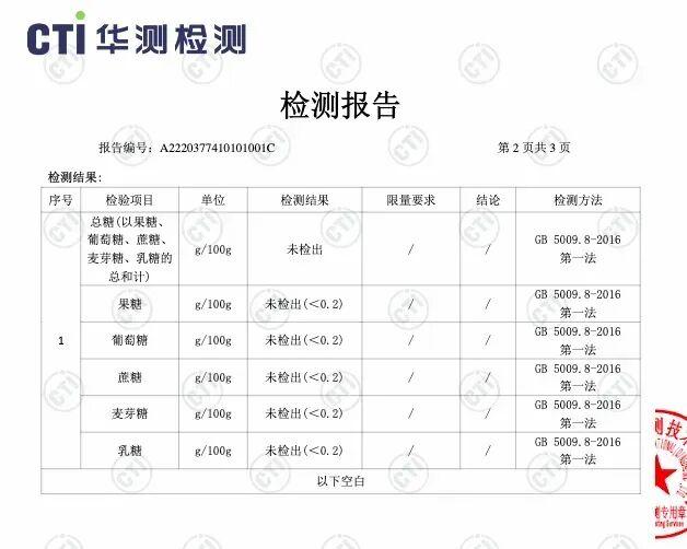 差點忘了雪媚娘層的無糖檢測報告,這就給大家呈上: