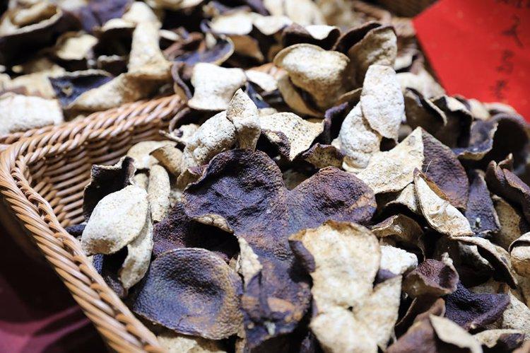 除此之外,試着拿指甲在新會陳皮表面輕刮,被刮的地方會泛出油光,而且陳皮存放的年份越久,刮後顯現的油光就越少。