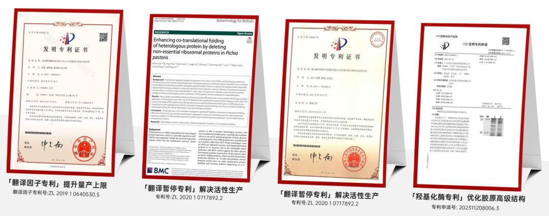 以畢赤酵母作爲膠原表達的載體,通過翻譯暫停技術,同時復刻了 I 型和 III 型膠原蛋白的結構,並將它們組裝成一種穩定的形態。