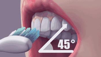 正確手法是使刷毛與牙齒、牙齦呈45度角,以畫小圓圈的方式清潔。