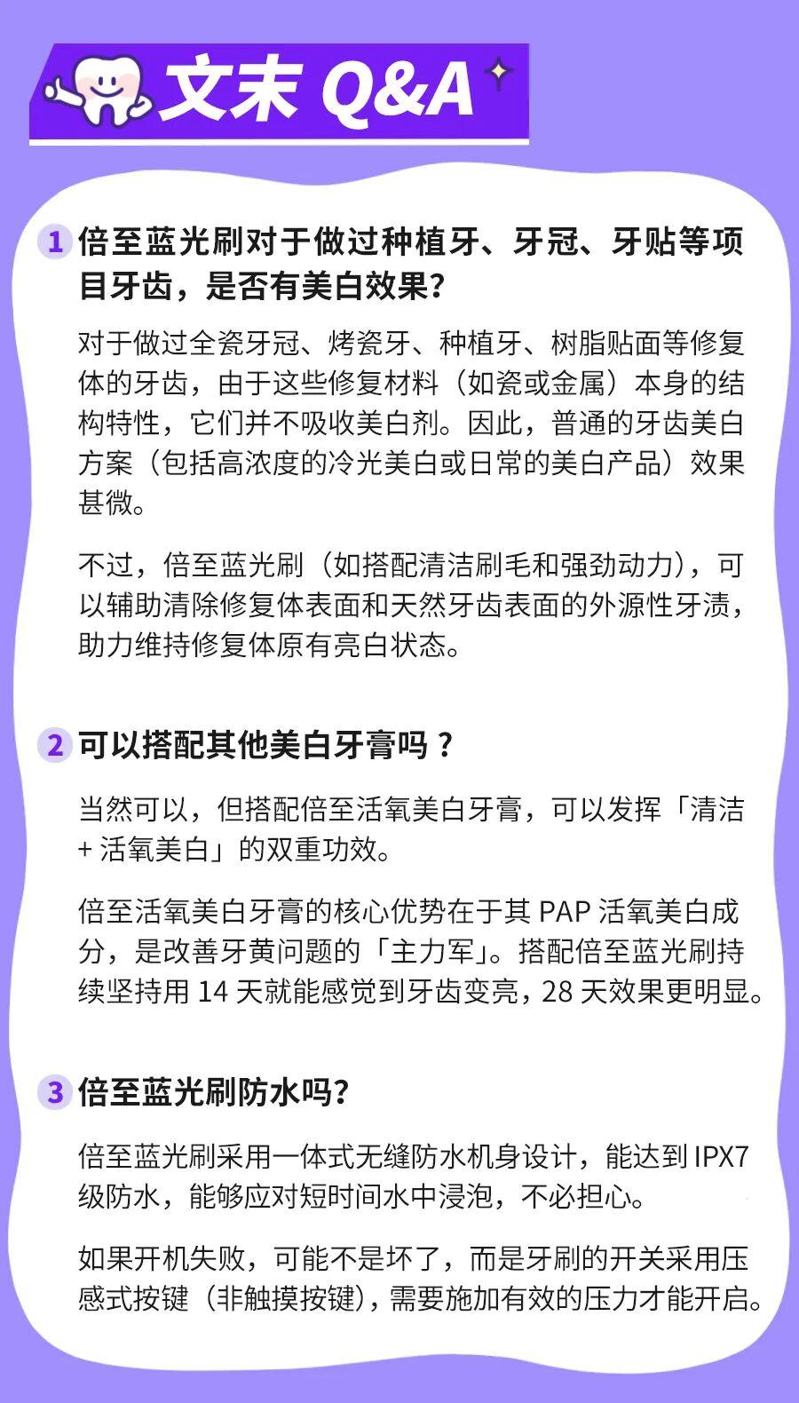 倍至藍光刷 + 活氧美白牙膏,真正解決這了些顧慮,實現了「白牙不傷牙」的承諾:
