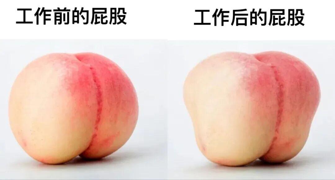 長期久坐,已經縮小變薄的臀肌又再次被壓癱。如果還習慣一坐下就習慣後傾癱着,站着前傾頂着,甚至撇着腳外八走路……