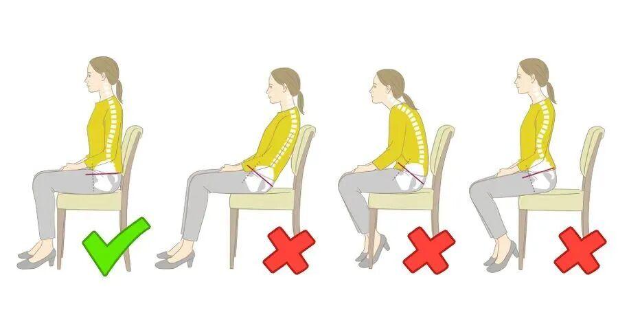 讓自己的坐骨(可以坐姿姿勢下用手摸摸有兩個凸起的骨頭尖尖)穩穩貼在椅面上。脊柱自然拉長,好像頭頂有根繩吊着咱們上半身。這樣骨盆更接近中立位,腰椎壓力更小。