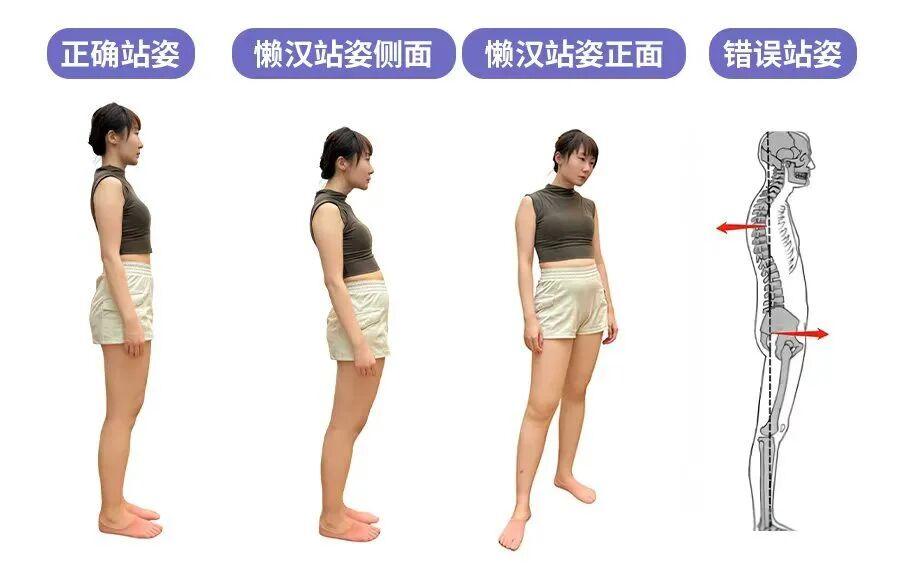站立或走路時條件反射式「夾屁股、腰往前頂」,形成骨盆前移 + 相對後傾的懶漢姿勢