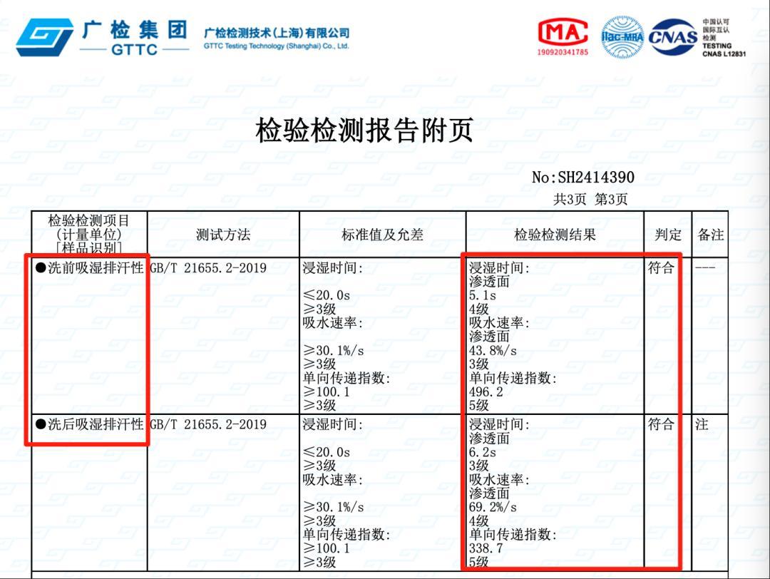 這就實現了「原紗吸汗」,保證了它在保暖的同時,具備優秀的溼度管理能力!經檢測,吸溼排汗性能遠超國標!
