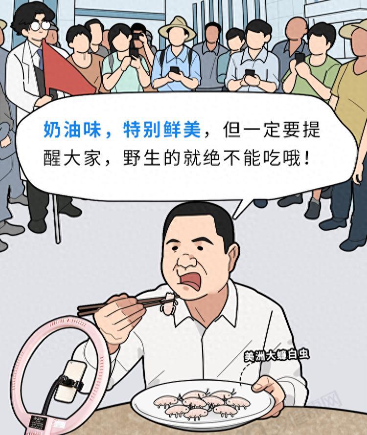 好醫生美洲大蠊GAP養殖基地的文廠長對着鏡頭展示盤中的美洲大蠊白蟲,隨即嚴肅補充,“但一定要提醒大家,野生的絕不能喫哦!”
