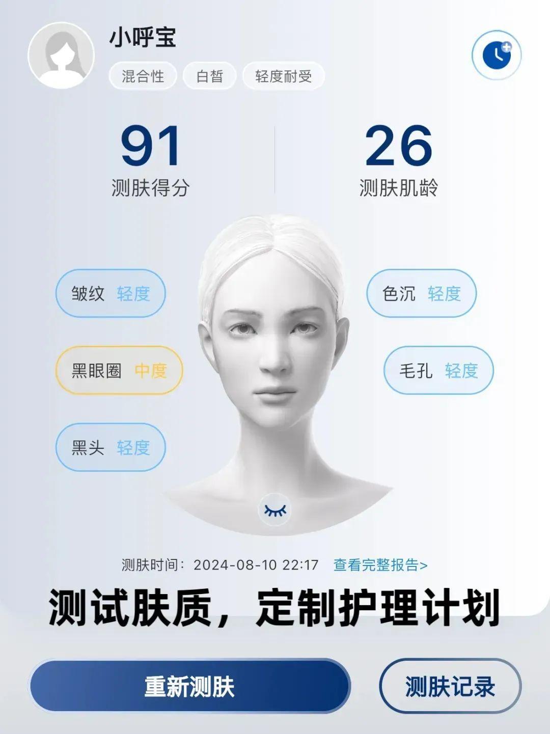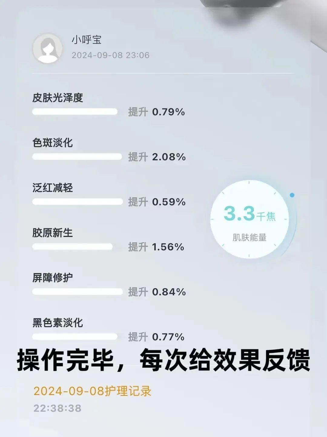 ③ 及時給到反饋:做完了以後,它會根據你的皮膚情況,給到你面部狀態的數據反饋,有效果更能堅持。