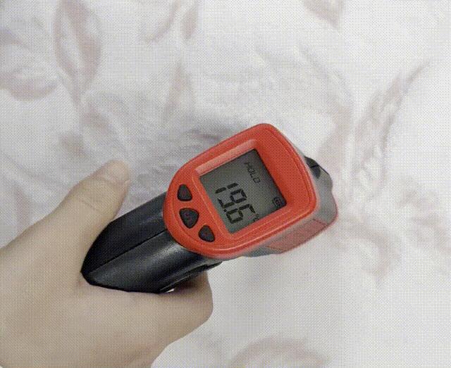 ✅ 第一個是前邊展示過的:用手模擬身體,手掌放在絨面上,幾秒鐘後,直接升溫將近 4 度!暖的速度快!!