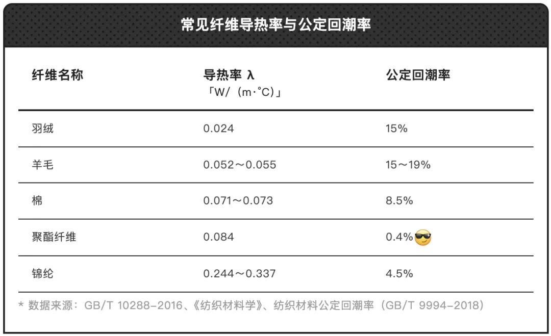 在冬天這種高保暖需求下,它可是製作毛絨件套的「天選材料」,熱導率和棉接近,最重要是公定回潮率只有 0.4%,在各種纖維中排名超低,這就表明它保暖的同時還不易受潮,這不就是南方人命中註定的「寶藏件套」嗎?