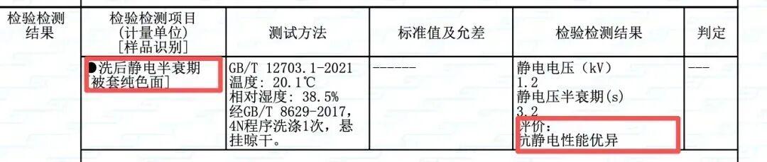 對於買絨件套常見的起靜電問題,大家直接把心放肚子裏,它做了專業檢測,具備優異的抗靜電效果(後文有詳細介紹)。