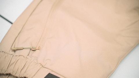 褲腿做的是直筒工裝版型 + 抽繩拉伸設計,在視覺更美觀大氣的同時,還能防止冷風倒灌,還能更有效地增強保暖性。