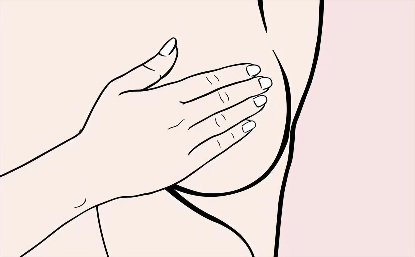 - 用指腹輕輕觸摸乳房,感受是否有腫塊、硬結;