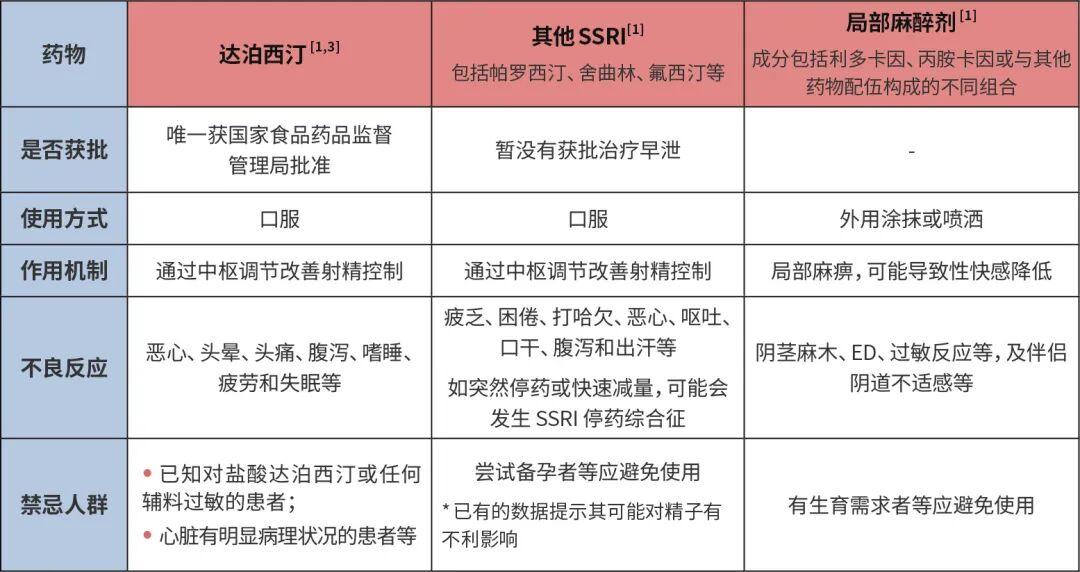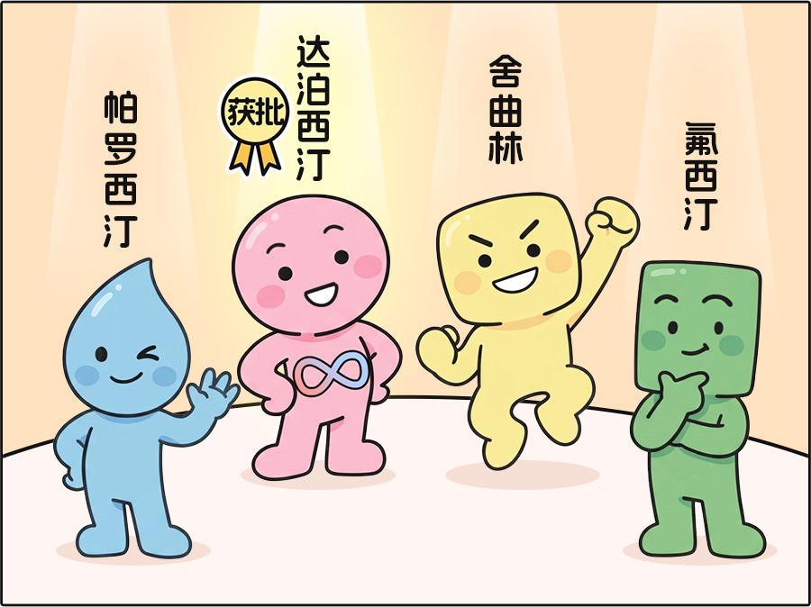 SSRI 常見藥物有達泊西汀、帕羅西汀、舍曲林、氟西汀等,其中達泊西汀是國內第一個也是至今唯一獲批早泄適應證的口服藥物[1]。