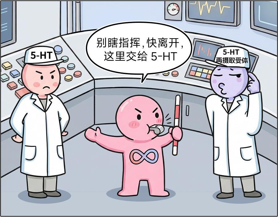 但,系統裏還有個「心急」的角色:5-HT 再攝取受體。