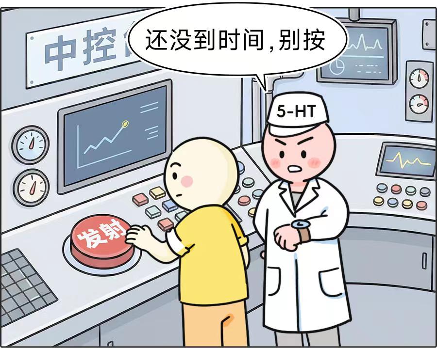 當 5-HT 再攝取受體過多,即過於興奮/過度激活時,會興沖沖地清除「暫停發射」指令,讓前方以爲可以發射,提前點火,導致火箭(精液)倉促發射——早泄便這樣發生了。