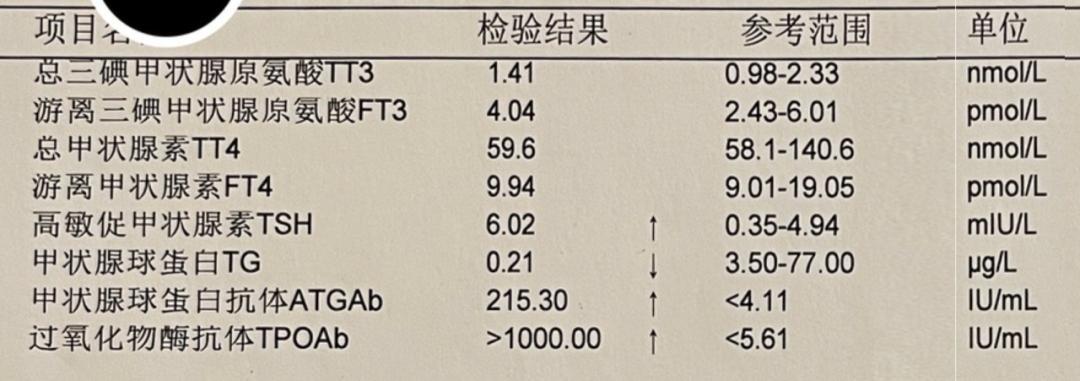 圖片說明:TSH 檢查結果,典型亞臨牀甲減