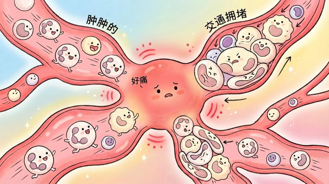 44. 發炎時的紅、腫、熱、痛,是血管擴張打開緊急通道,讓免疫細胞火速奔赴前線救援。