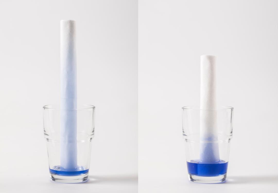 丁香園 60 g / ㎡ 棉柔巾和普通 40 g / ㎡ 棉柔巾吸水對比