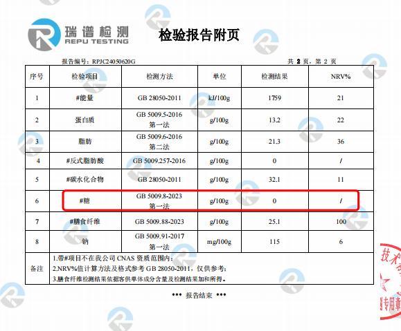 來,直接給大家看白紙黑字的「無糖」檢測報告: