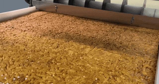就像用「空氣炸鍋烤雞腿」和用「油鍋炸雞腿」的用油量對比,和傳統沙琪瑪「油炸」工藝比起來,這個「烘烤」過程不需要額外再投入大量食用油。