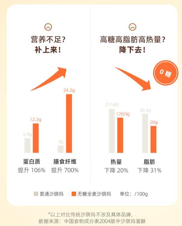 但是這款無糖全麥奶芙沙琪瑪在最基礎,也是最根本的配料上,下足成本,讓營養上了一個臺階。