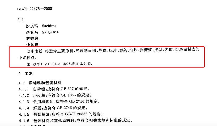 看看推薦國標裏對沙琪瑪的定義