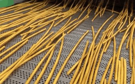 接着就是烘烤:把擠成長條狀的麪糊放在烤箱裏烘烤至表面金黃酥脆即可。劃重點,烘烤過程中不額外加一滴油。