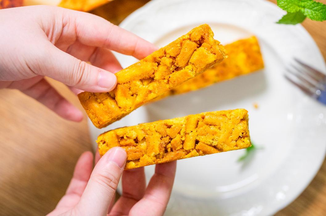 這款無糖全麥奶芙沙琪瑪,特別就特別在,它是真的一點都沒用「油炸」「裹糖衣」這些公認的工藝,從源頭就減少了油和糖的入場。
