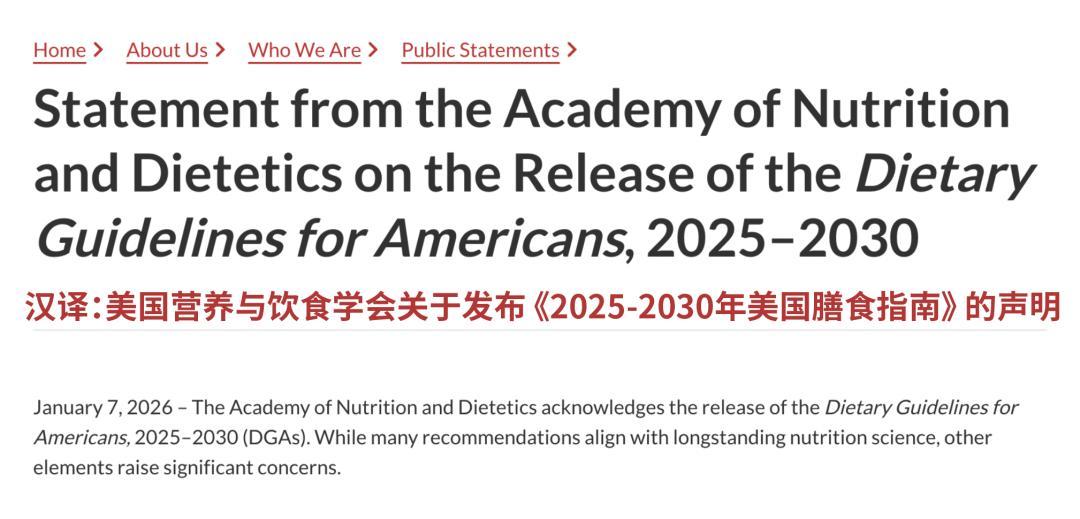 [8]GlobeNewsWire.Statement from the Academy of Nutrition and Dietetics on the Release of the Dietary Guidelines for Americans, 2025–2030.January 07, 2026 20:51 ET