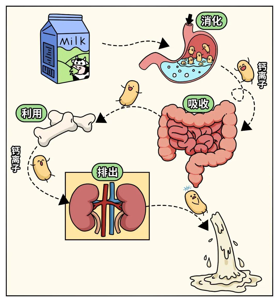 食物中的鈣,不是喫多少就能給身體補多少,而是要經過「消化—吸收—利用—排出」一整個過程,「吸收的 - 排出的」纔是最後真正補進身體的量。
