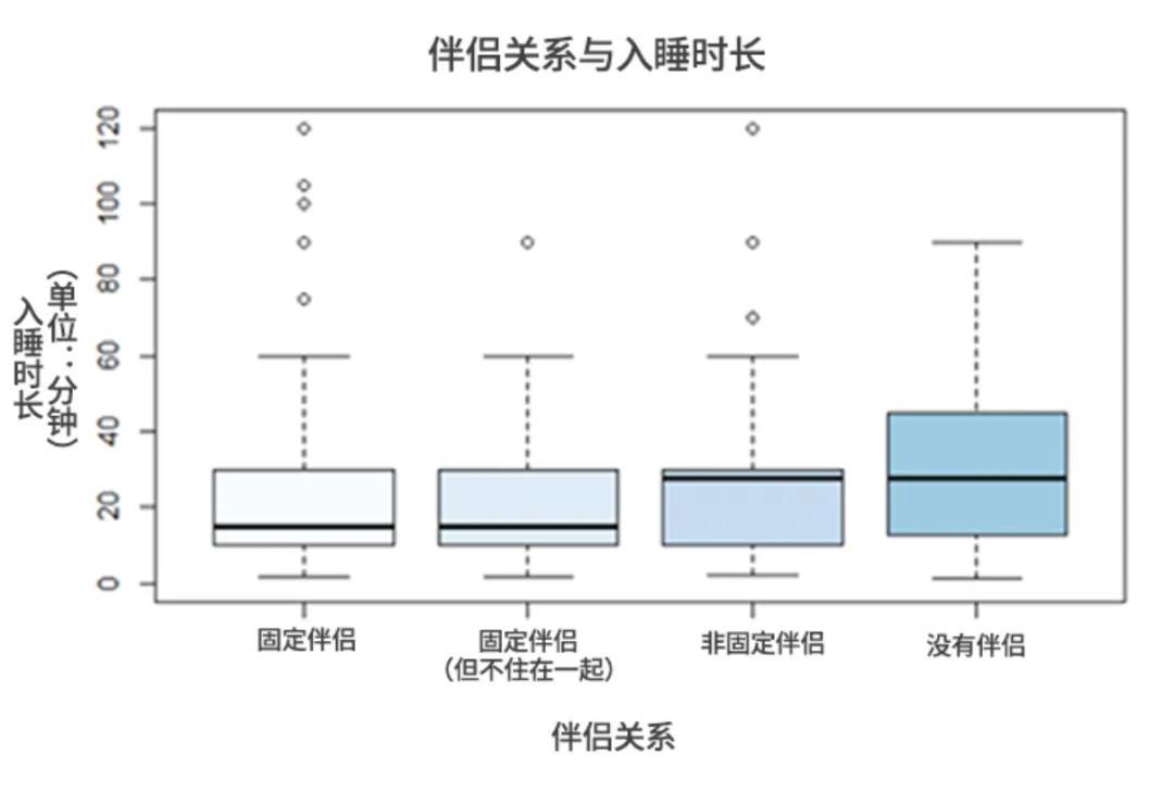 圖注:黑色粗橫線,爲不同伴侶關係的平均入睡時長