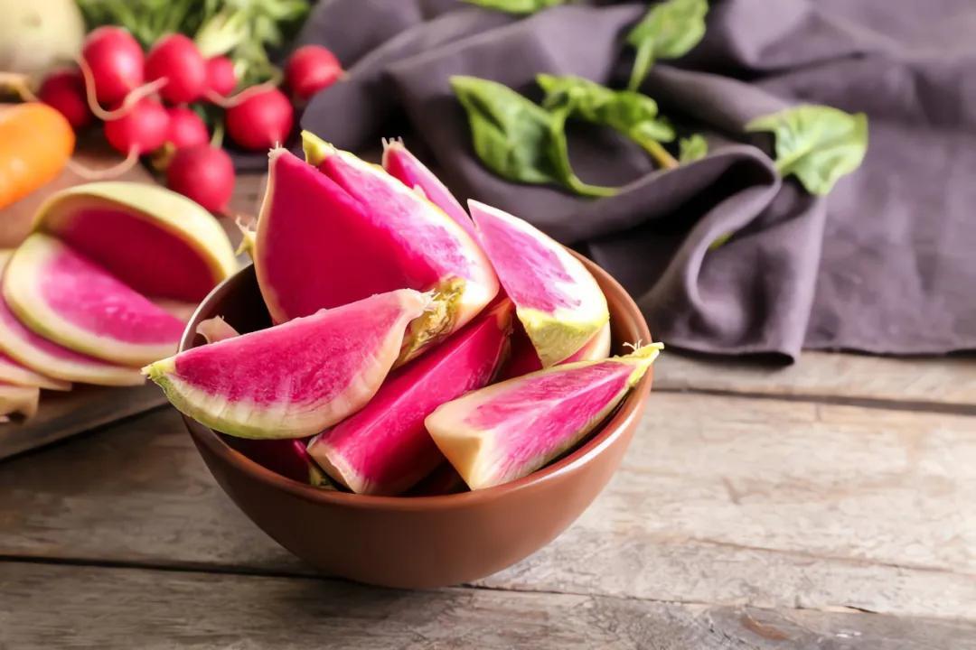 個小皮薄,最突出的營養優勢是富含葉酸,這種物質對細胞生成與修復、維持神經和心血管健康等有重要作用;此外,膳食纖維含量也高於其他蘿蔔。