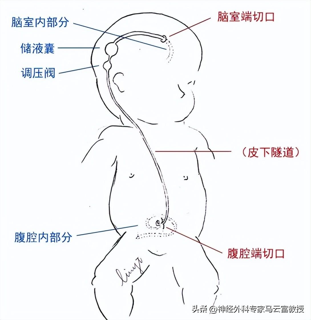 這根導管和腦室端導管相連,一端連接壓力調節閥,另一端則通過皮下隧道,穿過頸部、胸部、腹部的皮下組織,最終被放置在寶寶的腹腔內。爲什麼選擇腹腔作爲“吸收站”呢?因爲腹腔內部有廣闊的腹膜,腹膜具有極強的吸收能力,能夠將引流過來的腦脊液安全、快速地吸收到全身的血液循環中,再通過身體的新陳代謝排出體外,整個過程溫和且不影響身體正常機能。