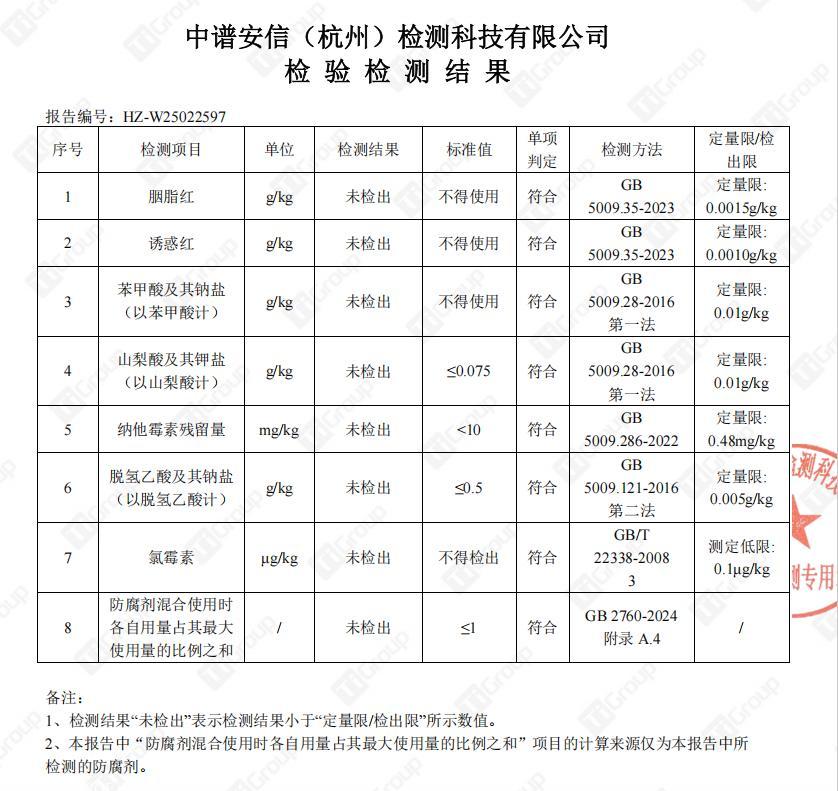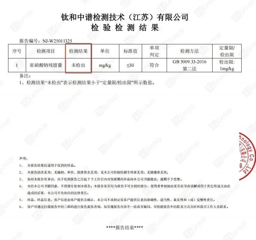 亞硝酸鈉殘留量未檢出!