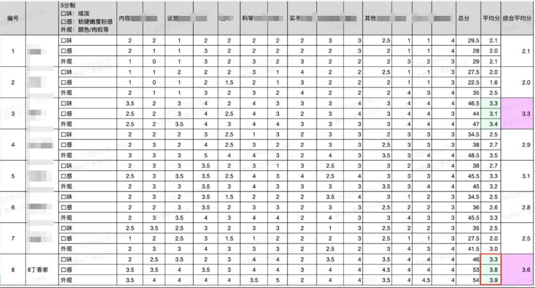 在進行了長達 2 小時的選拔評分之後,可以看到,咱丁香家自研的這款午餐肉,哪怕是在做到了相對健康的情況下,在口感和外觀上斷崖式領先,口味上也是和第二名並列齊驅的高!
