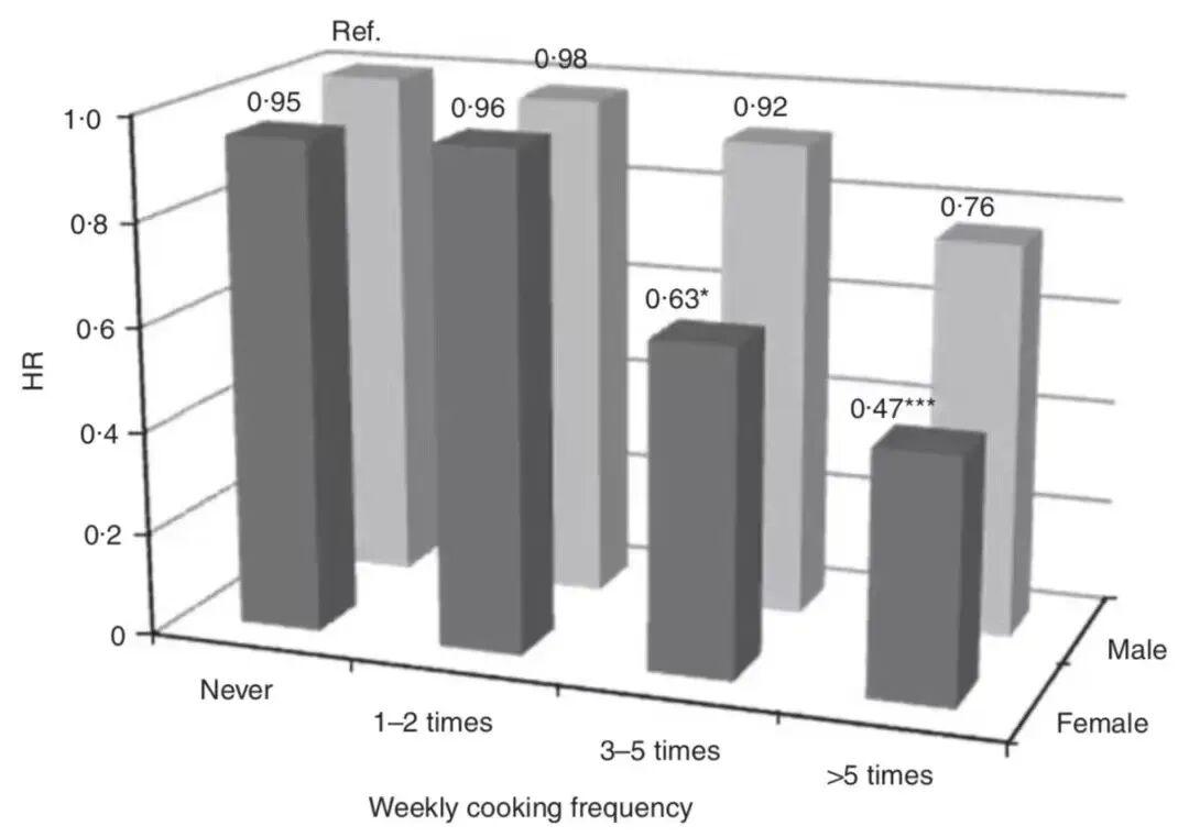 一項隨訪10年的研究發現:每週下廚 ≥ 5 次的人,全因死亡風險降低 50%。