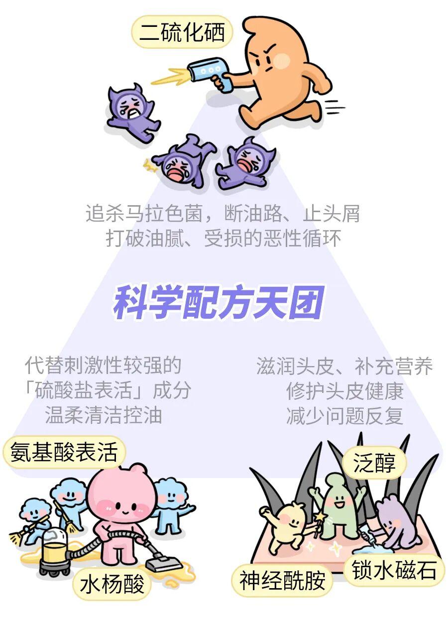 恰到好處的配比,既能控制頭油分泌、減少頭皮脫屑,也兼顧了溫和、避免刺激損傷頭皮。