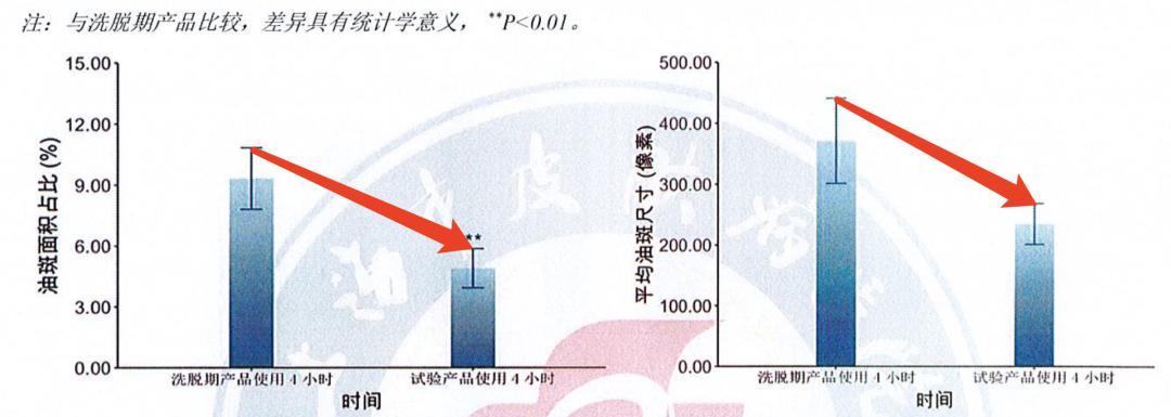 即使停用 2 周後,頭屑依然在減少,油斑面積佔比也在減小!