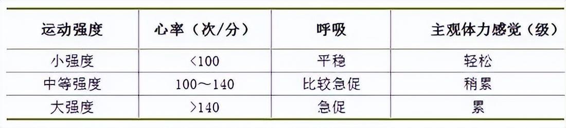 國家體育總局發佈的《全民健身指南》中,總結了運動強度劃分與監測運動強度指標: