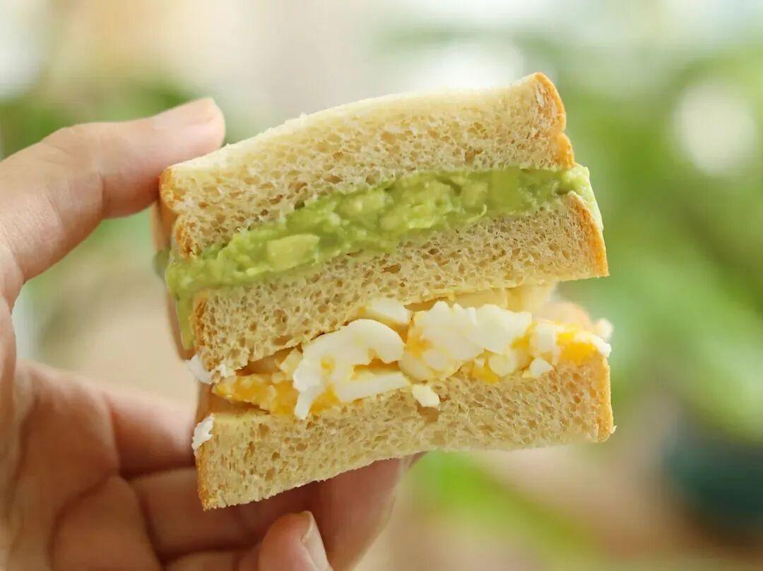 4. 一片吐司抹雞蛋碎,一片吐司抹牛油果,最後再蓋一片吐司
