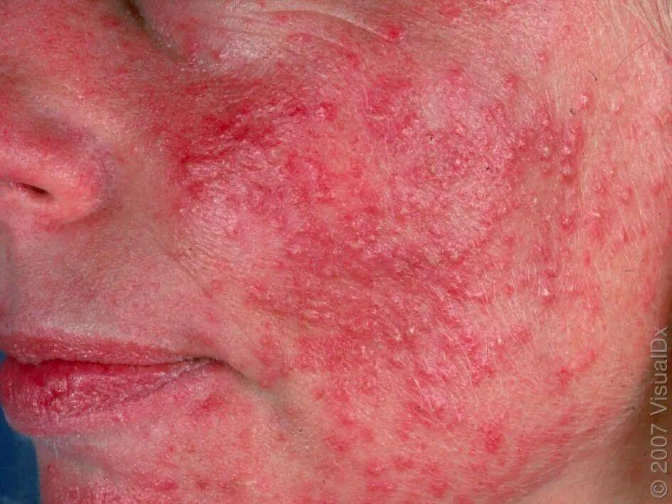 疾病特點:發病年齡晚於尋常痤瘡,比較常見的年齡段爲 30~50 歲。皮損形態多樣,典型表現爲潮紅 / 紅斑、毛細血管擴張,偶有炎症性丘疹和膿皰,無粉刺。環境因素常爲觸發因素,例如日曬、熱刺激、機械摩擦。確診通常無需額外輔助檢查。