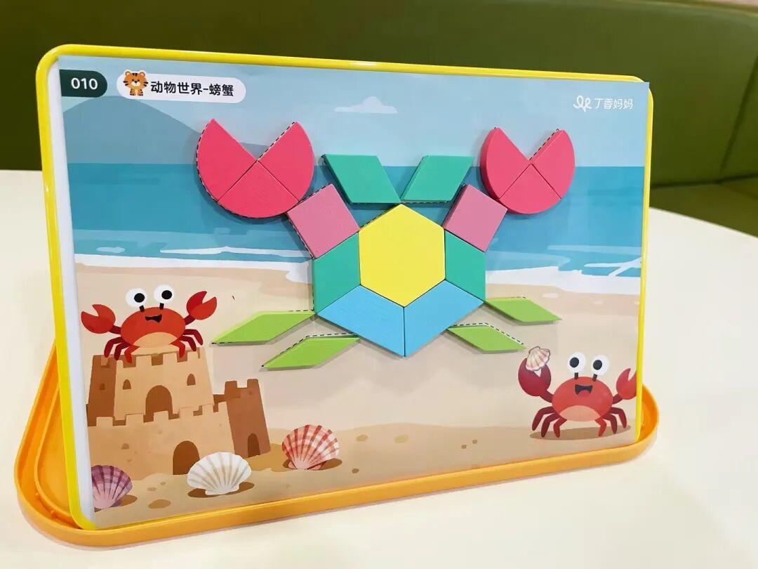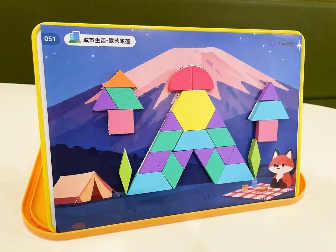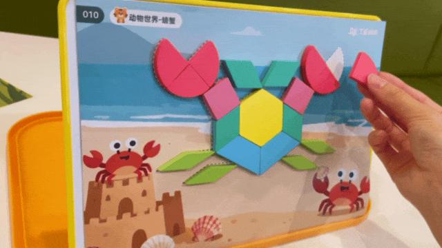 孩子根本不需要看複雜的說明書,只需要像做填空題一樣,把積木直接貼在題卡對應的形狀上即可。