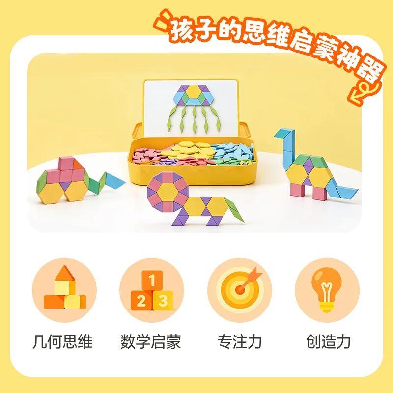 看似簡單的拼搭,其實是在訓練孩子的邏輯思維和專注力,特別是對圖形的認知、組合與拆解,更是小學數學幾何最重要的啓蒙「實物課」。