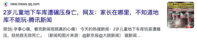尤其不建議在地下車庫遛娃。孩子身高矮小,進入車輛的視野盲區會非常危險。一項研究發現,小區裏發生的事故佔到了兒童交通事故總數的 15.9%。[7]