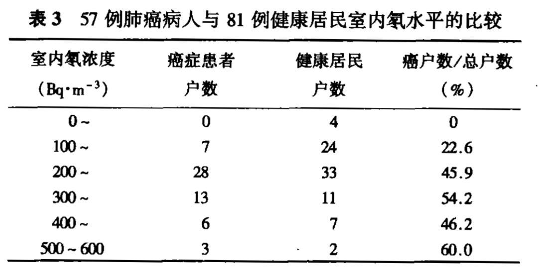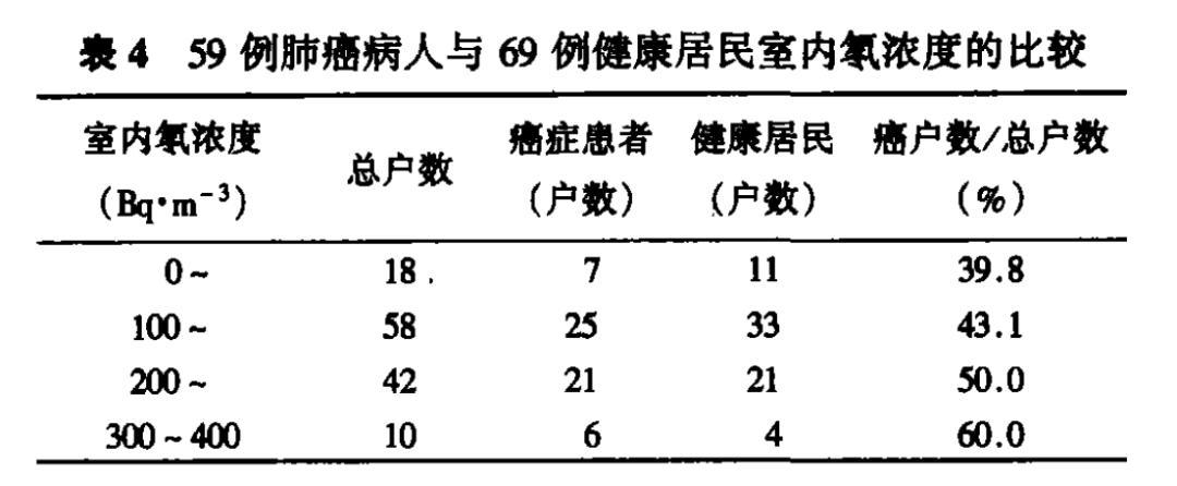 ● 肺癌發病率隨着室內氡濃度的增高而上升,兩者呈正相關關係。