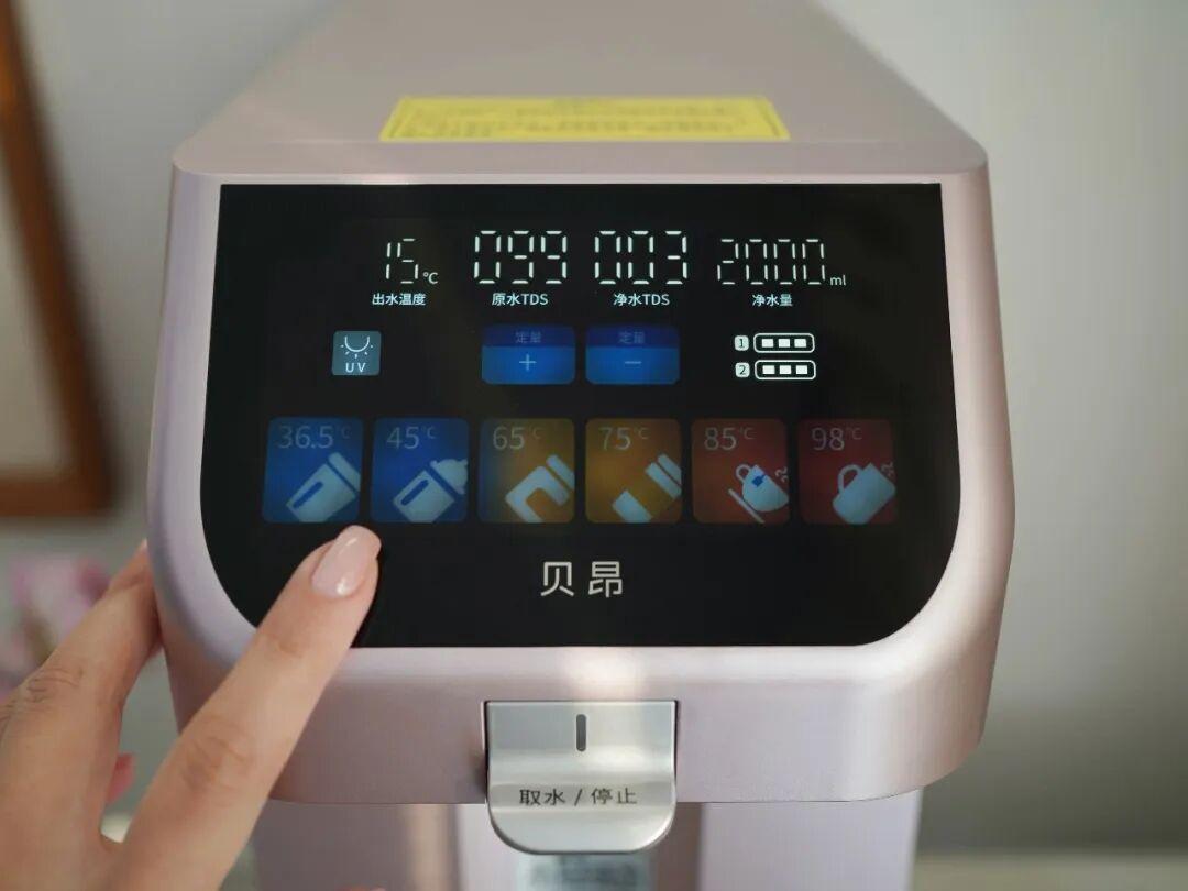 它配備了直觀的彩色觸控屏,水溫、水量、濾芯壽命、水質情況等全都清晰顯示。