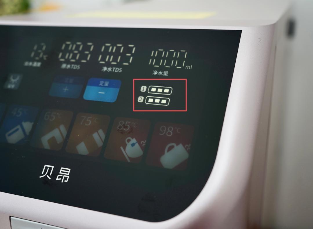 而且屏幕上會有濾芯更換提示燈,咱自己根本不用費腦子記~
