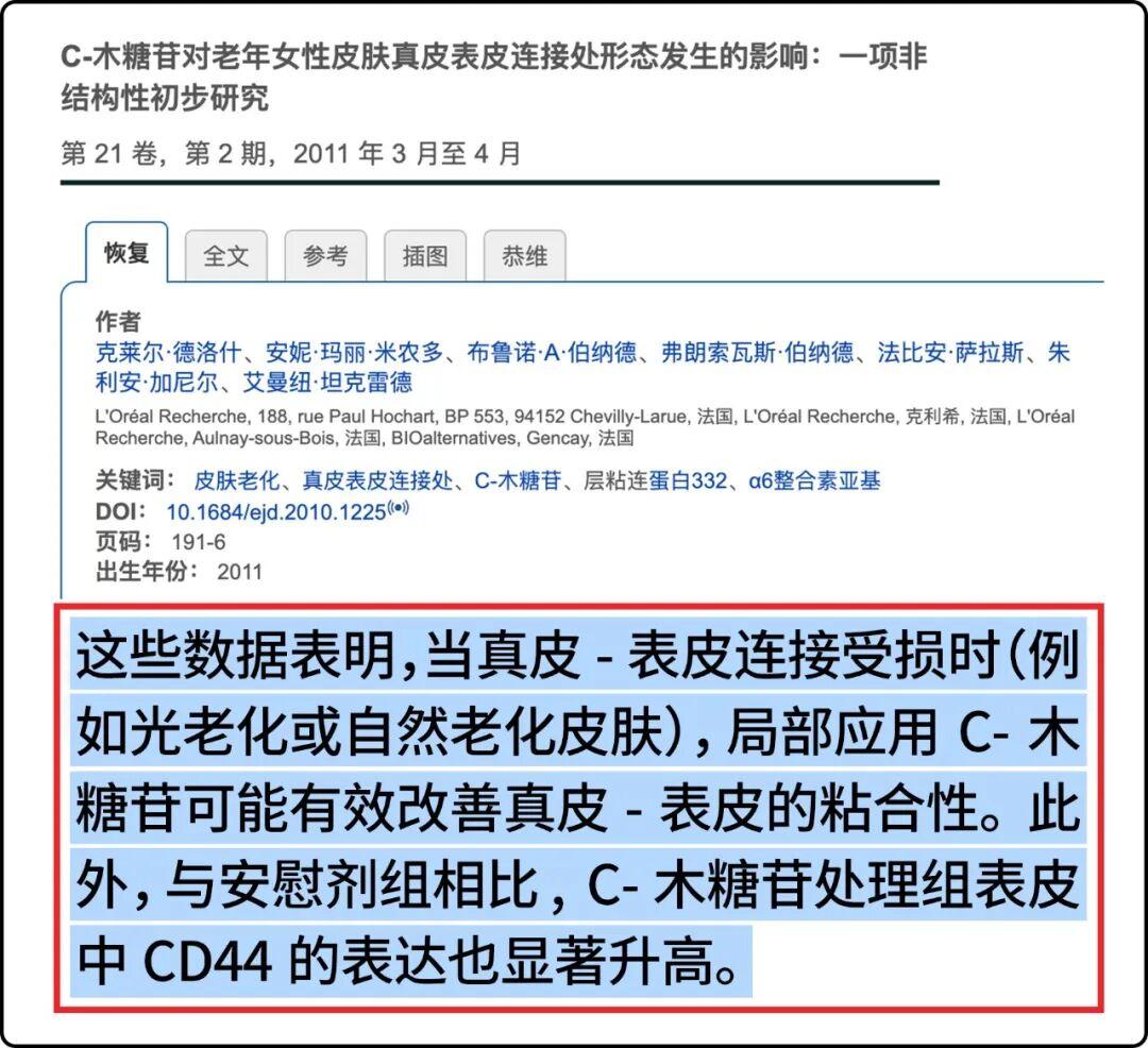 [5] Deloche C, Minondo AM, Bernard BA, Bernerd F, Salas F, Garnier J, Tancrède E. Effect of C-xyloside on morphogenesis of the dermal epidermal junction in aged female skin. An ultrastuctural pilot study. Eur J Dermatol. 2011 Mar-Apr;21(2):191-6.