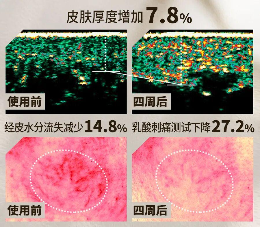 這說明啥?咱皮膚鎖水能力更強了,屏障更堅韌了,不容易受刺激泛紅了,皮膚底子厚實了,一整個四維大提升。