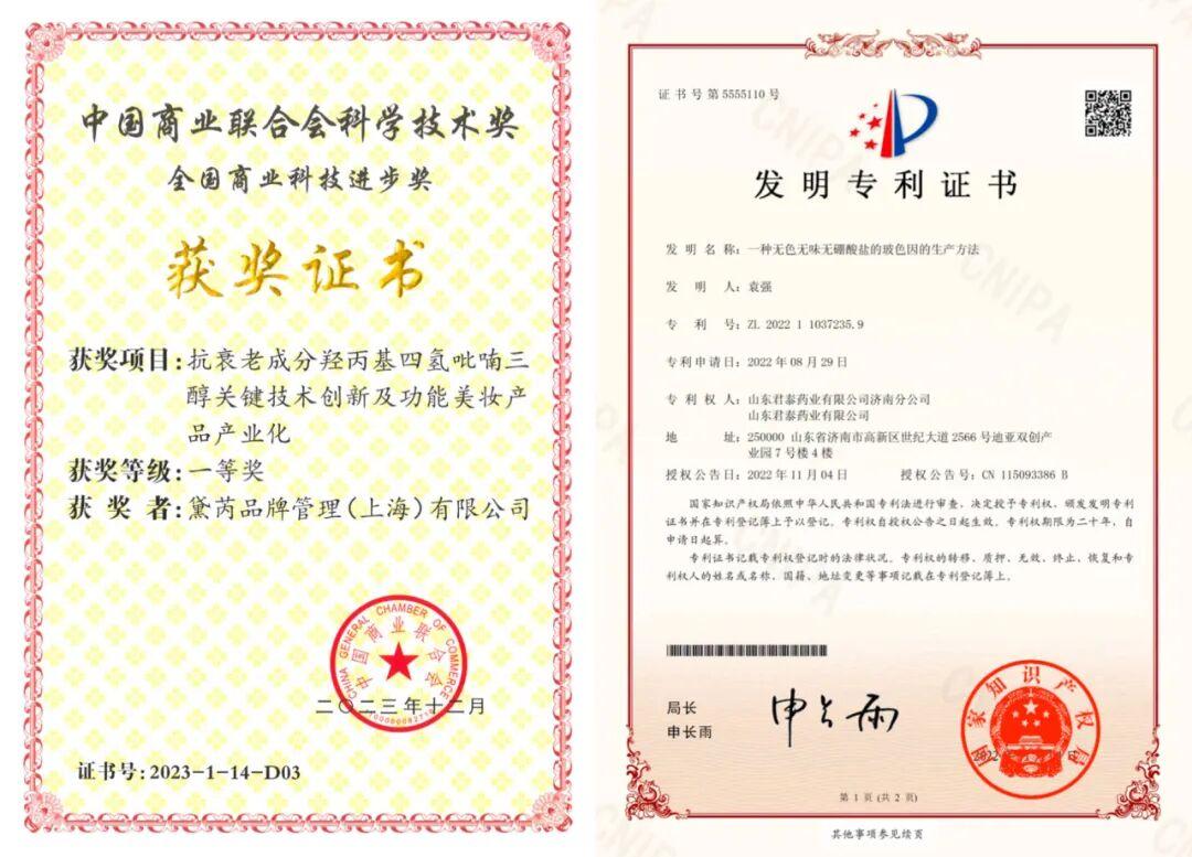 祕訣也簡單,就是精進提純和配方技術。言之有物獨創的玻色因製備技術,不僅申請了專利,更獲得全國商業科技進步一等獎!